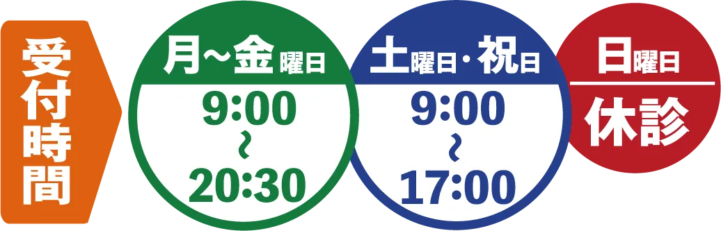 院内は清潔で落ち着いた空間を整えており、リラックスして施術を受けていただけます。また、最新の治療機器を使用し、早期回復のお手伝いもしています。お昼休みの休診時間はなく、平日の診療受付は20時30分となっておりますので、忙しい方もぜひお気軽にお越しください。お待ちしています!